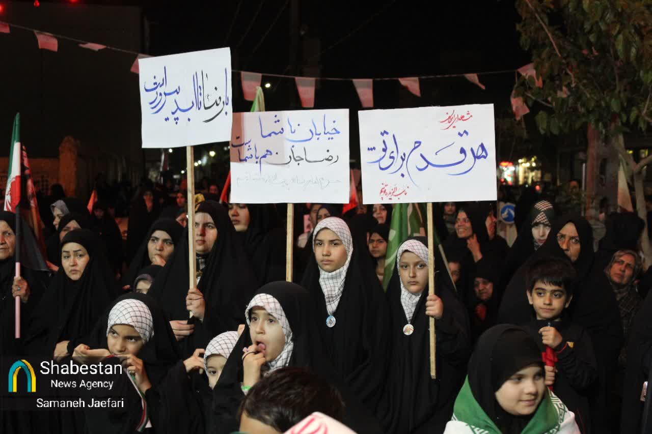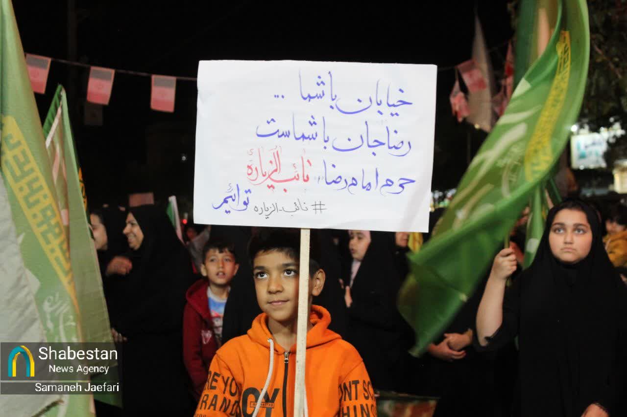 تجمع پرشور بچههای مسجدی و اهالی محلات پایین پای حرم مطهر امام هشتم علیه السلام در مصلی ۲۲ و تشرف گروهی به صورت پیاده تا حرم مطهر رضوی به نیابت از مردم ایران، شامگاه پنجشنبه ۳ اردیبهشت و در پنجمین شب از شبهای کرامت، به نیابت از مردم غیور خوزستان برگزار شد.