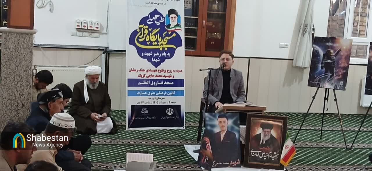 برگزاری محفل انس باقرآن کریم از طرح ملی «مسجد پایگاه قرآنی» به یاد وگرامیداشت رهبر شهید امت، و شهدای جنگ رمضان و سرباز شهید محله کوهنورد «محمد حاجی گزیک» به همت کانون فرهنگی و هنری مسجد فاروق اعظم ارومیه و با حضور قاری دیلمقانی و تجلیل از خانواده سرباز شهید برگزار شد.